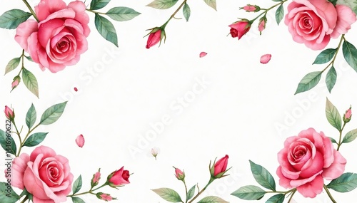 Delicate watercolor roses & leaves, repeating pattern, flower design, seamless flowers