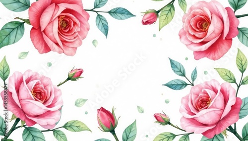 Delicate watercolor roses & leaves, repeating seamlessly , rose, illustration