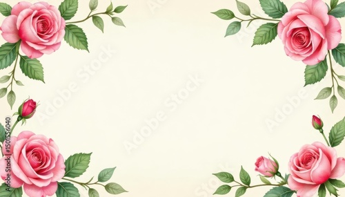 Delicate watercolor roses, climbing vines, & leaves on a cream background, wallpaper pattern, leaves