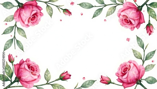 Delicate watercolor roses, leaves, & buds repeat seamlessly , delicate, artwork