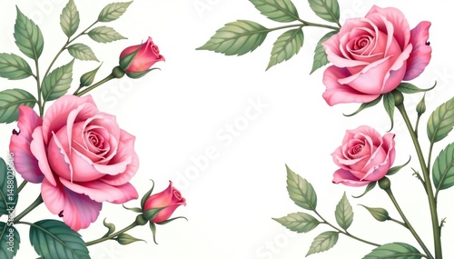 Delicate watercolor roses, leaves, and buds in soft pastel hues, repeat, botanical illustration