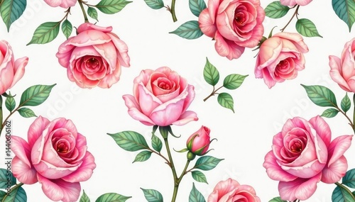 Delicate watercolor roses, repeating seamlessly , flower pattern, red