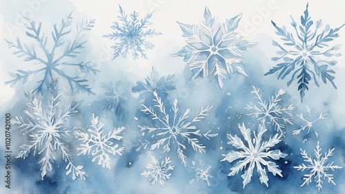 Delicate Watercolor Snowflakes in Soft Blue for Winter Wonderland Decor