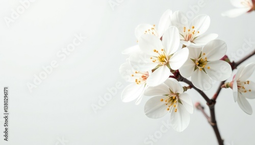 Delicate white blossoms against a pure white backdrop, studio, flora