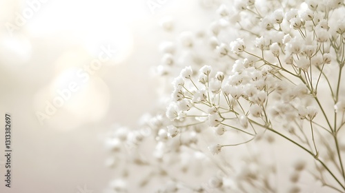 Delicate white flowers bloom beautifully with a soft blurred background