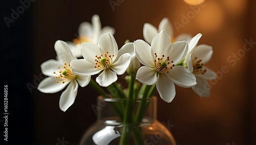 Delicate white flowers in a glass vase, a serene and elegant image.
