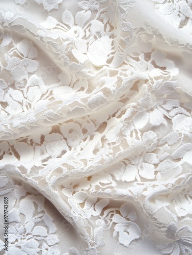 Delicate White Lace Fabric with Floral Accents, perfect for crafting, clothing, and home decor. This beautiful fabric features a delicate lace pattern with intricate floral accents, adding a touch of