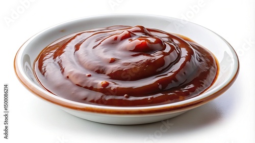 Delicious and thick barbecue sauce in a small white ceramic bowl