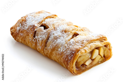 Delicious Apple Strudel Isolated on White Background
