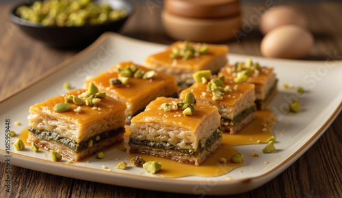 Delicious Baklava Dessert with Pistachios on Plate