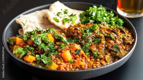 Delicious Bowl of Fresh Food Accompanied by Refreshing Drink and Napkin