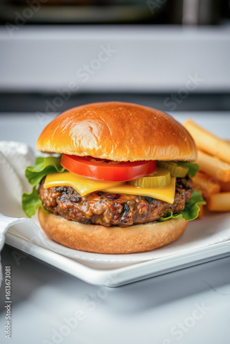 Delicious Cheeseburger with Crispy French Fries