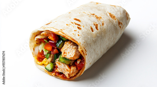 Delicious Chicken Burrito Photo: Close-Up Shot of Savory Filling. AI Generated