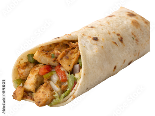 Delicious Chicken Wrap with Vegetables and Tortilla Isolated on transparent background cutout, PNG file, Cutout file