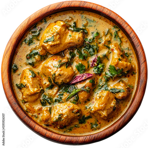 Delicious Creamy Chicken Curry in Wooden Bowl Spicy Food