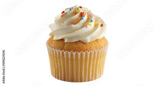 Delicious frosted cupcake with colorful sprinkles, perfect for celebrations