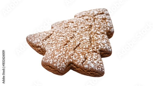 Delicious gingerbread Christmas tree cookie, dusted with powdered sugar, symbolizing holiday baking and sweet winter treats, isolated on transparent background
