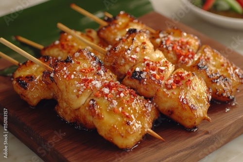 Delicious Grilled Fish Skewers with Chili Flakes and Salt
