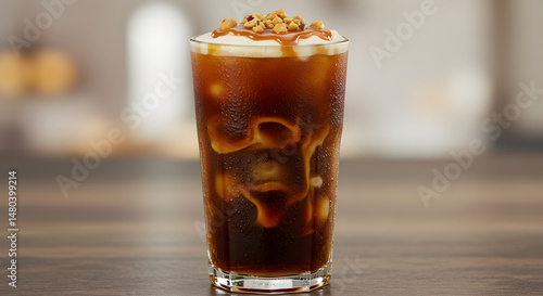 Delicious Iced Coffee Drink Garnished With Caramel Sauce and Whipped Cream