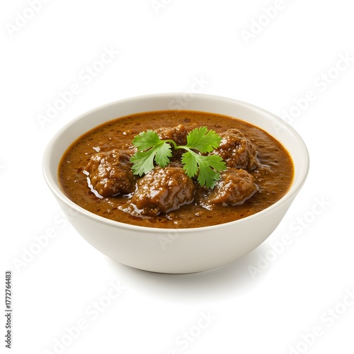 Delicious Indian curry with coriander in white bowl