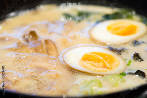 delicious japan food style menu.traditional japanese local Ramen noodle on black dish.japanese chef cooking Ramen noodles at japanese restaurant.tasty japanese food served on dish.