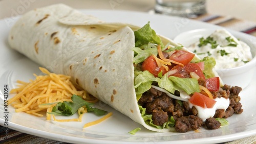 Delicious Mexican Burrito with Beef Lettuce Cheese and Tortilla