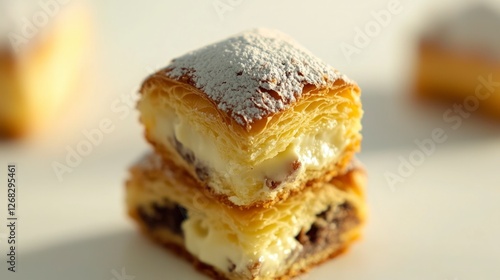 Delicious Pastry Cream Puff Flaky Layers Sweet Treat Dessert Bakery Food Photography