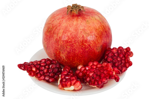 Delicious pomegranate fruit, isolated on white background