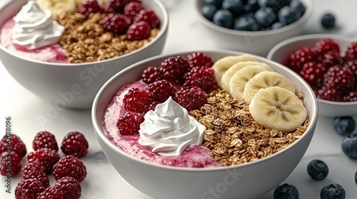 Delicious Raspberry Banana Smoothie Bowl with Granola and Whipped Cream: A Healthy and Refreshing Breakfast
