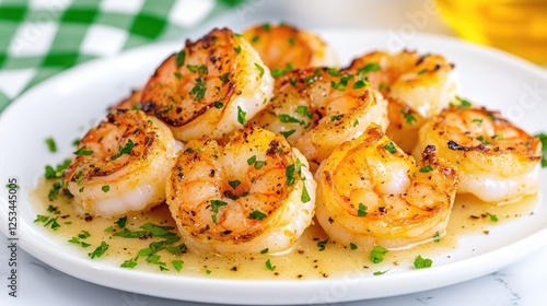 Delicious sauteed shrimp on a white plate