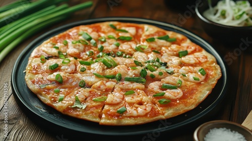 Delicious Shrimp Pizza with Fresh Green Onions and Tomato Sauce