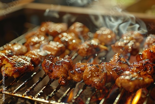 Delicious skewers sizzle over an open flame perfect for a backyard barbecue