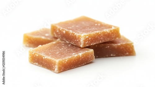 Delicious Soft Brown Caramel Candy Squares on White Background