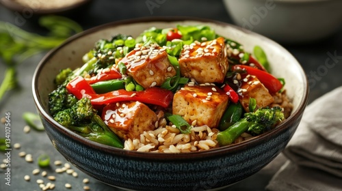 Delicious Teriyaki Tofu Bowl with Rice and Vegetables