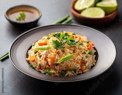 delicious thai fried rice with fresh vegetables