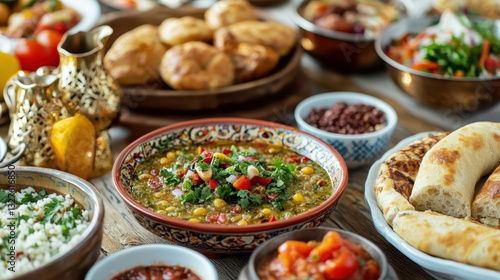 Delightful assortment of traditional Middle Eastern dishes displayed on a rustic wooden table inviting a culinary experience
