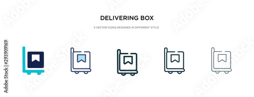 delivering box icon in different style vector illustration. two colored and black delivering box vector icons designed in filled, outline, line and stroke style can be used for web, mobile, ui