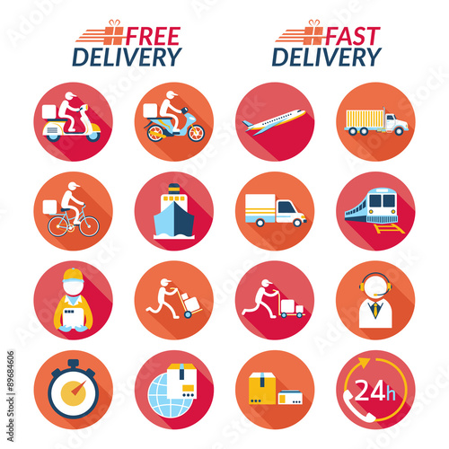 Delivery Flat Icons Set, Shipping, Transport, Order, Service, Fast and Free