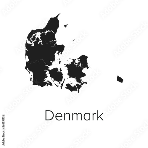Denmark Map Vector Illustration - Silhouette, Outline, Denmark Travel and Tourism Map