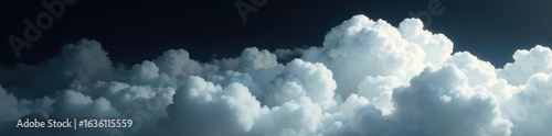 Dense, billowing white clouds, sharply contrasted against black , weather, clipping path, nature photography