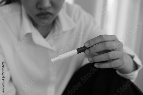 Depression and mental illness. Asian woman stressed from premarital pregnancy. Stressed girl confused with unhappy problems, arguing with boyfriend, single mother, social problems, disappointed