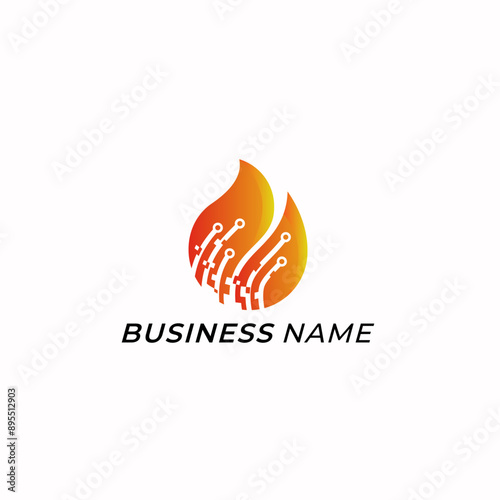 design logo creative fire and circuit tech