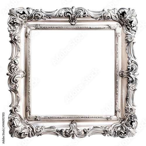 Designer Picture Frame With Silver Finish isolated on a transparent background