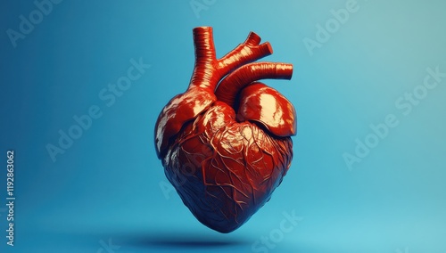 Detailed and Vibrant Anatomical Heart Model Isolated on a Blue Background for Medical, Educational, and Artistic Purposes Showcasing Life and Vitality