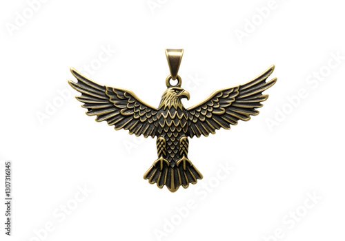 Detailed bronze eagle pendant with intricate feather design, perfect for jewelry lovers and artistic collections
