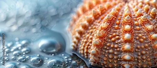 Detailed close up image of a sea urchin shell exhibiting intricate textures ridges and holes in natural colors showcasing its unique marine beauty with copy space image