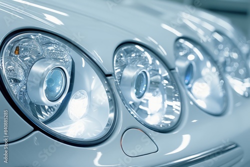 Detailed close up of modern car headlights for enhanced visibility and searchability
