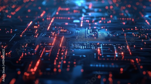 Detailed close-up of a blue circuit board filled with tiny microchips, transistors, and data pathways, illustrating the complexity of modern technology