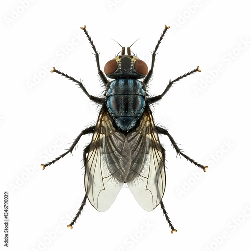 Detailed Closeup of a Common Bluebottle Fly on a White Background