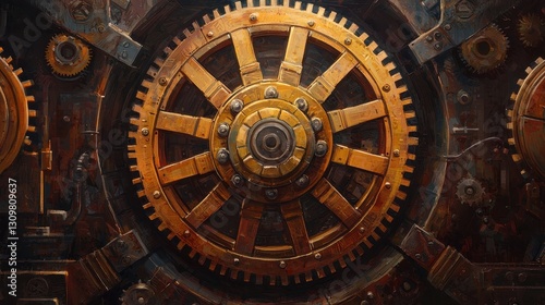 Detailed Close-Up of a Vintage Gear Mechanism with Rusty Finish